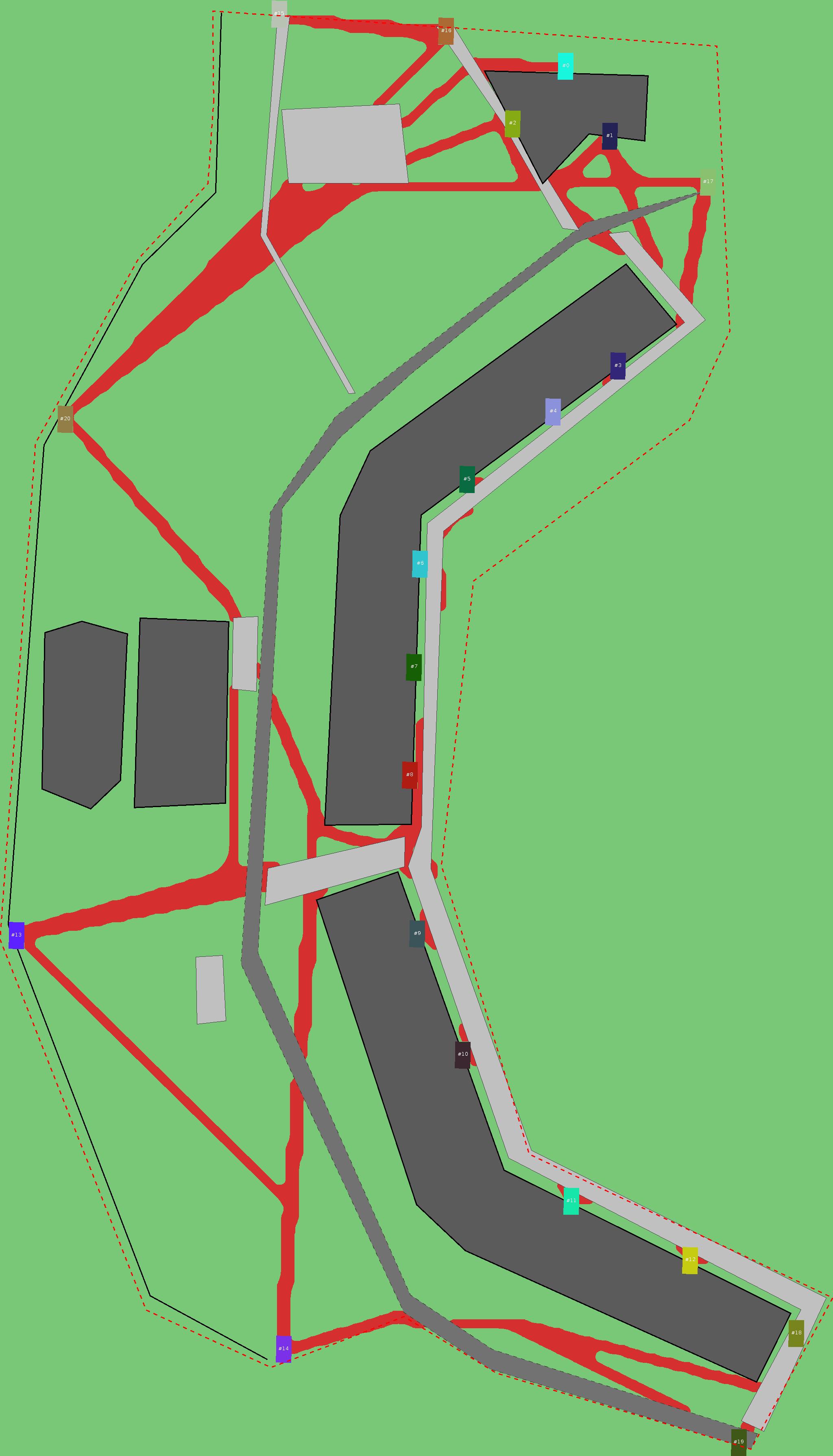 Красным цветом показаны места, где, вероятнее всего, появятся стихийные тропы..