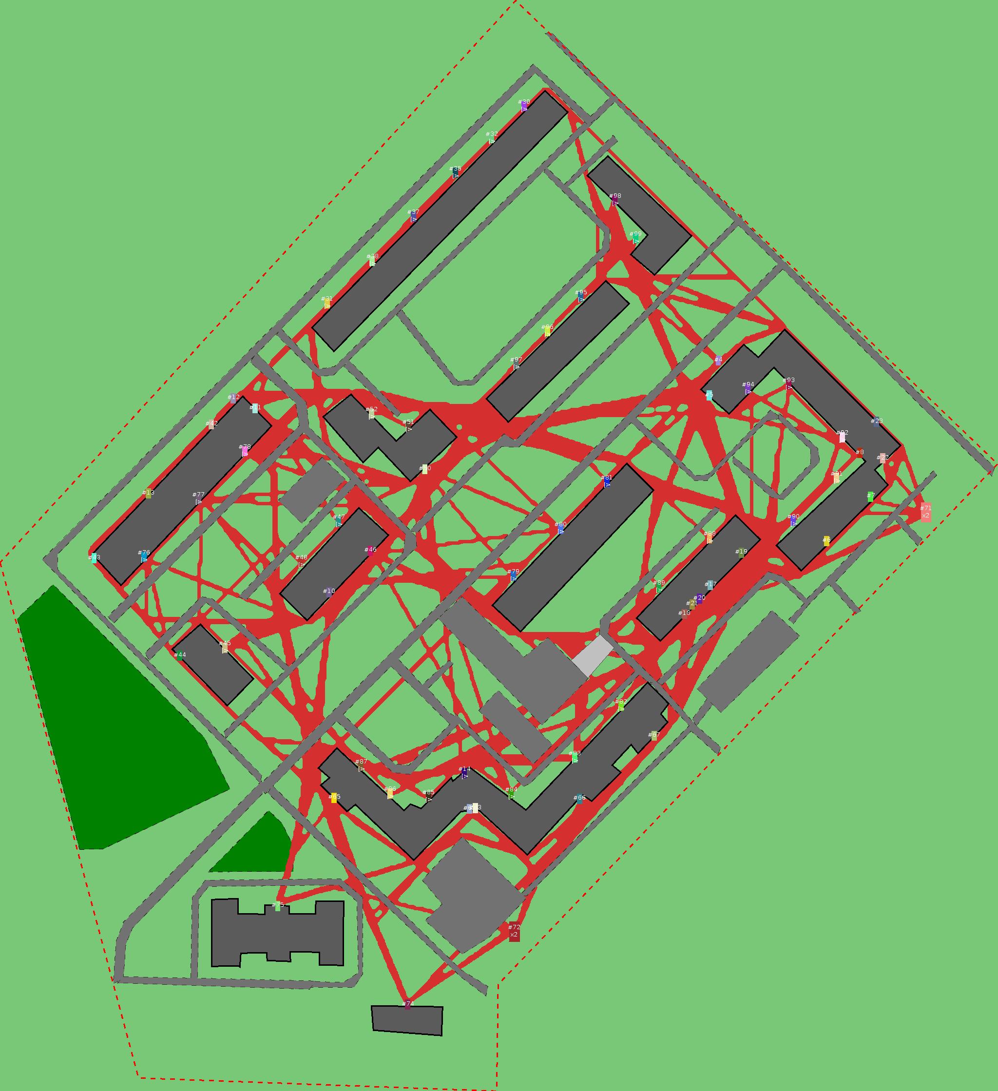 Красным цветом показаны места, где, вероятнее всего, появятся стихийные тропы..