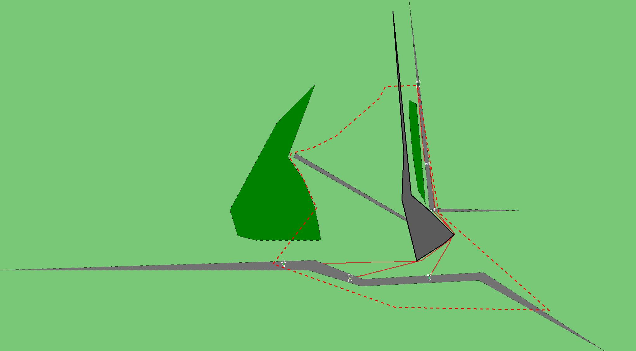 Красным цветом показаны места, где, вероятнее всего, появятся стихийные тропы..